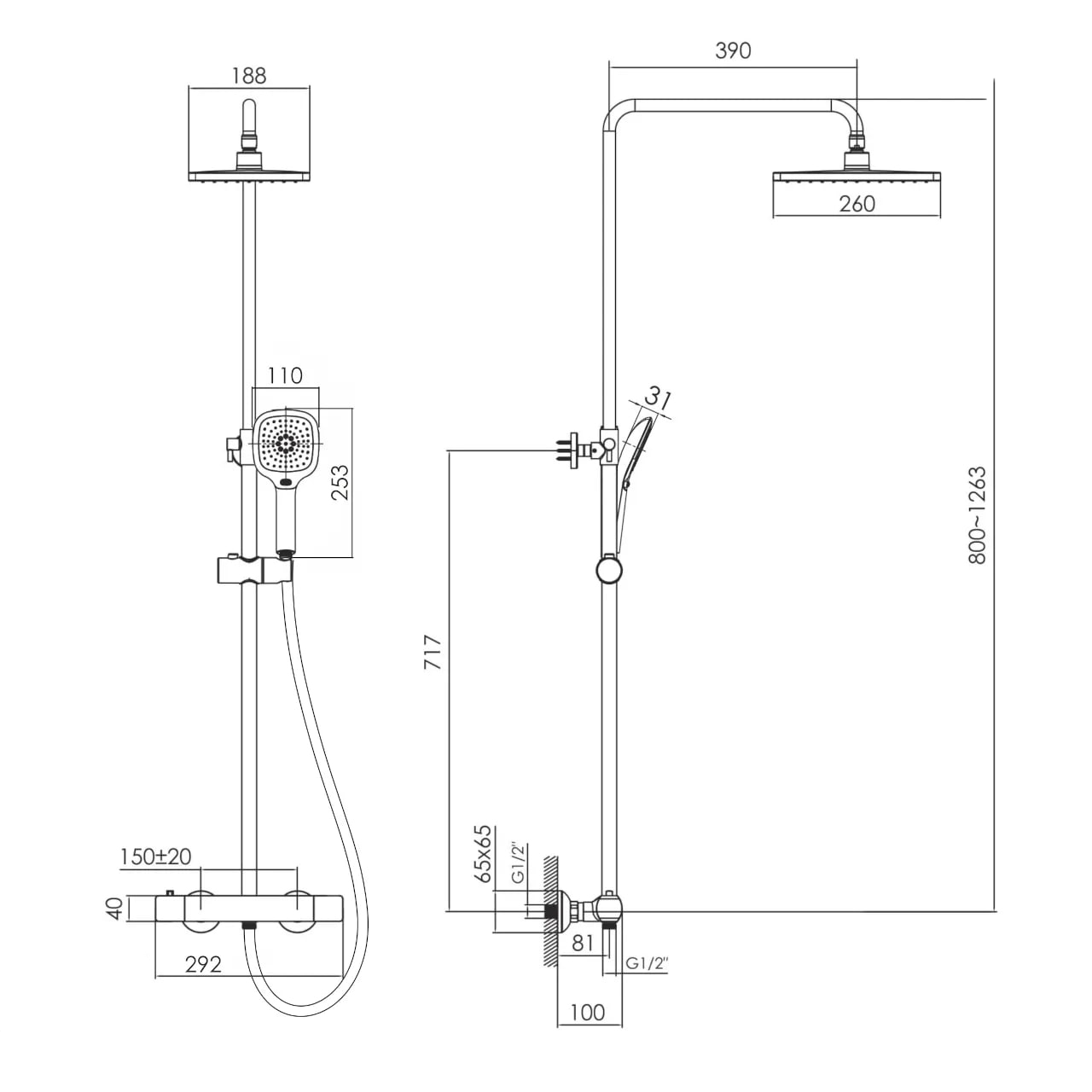 Bilovec душова система (термостат для душу, верхній і ручний душ) t048S00901SQ Imprese