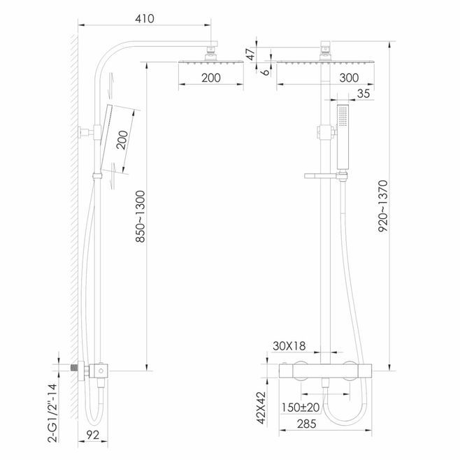 Grafiky душ.система(терм/душ, душ30*20см,лійка1 реж,шланг1500м SS)браш. бронза ZMK1724150480 Imprese
