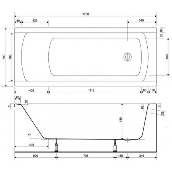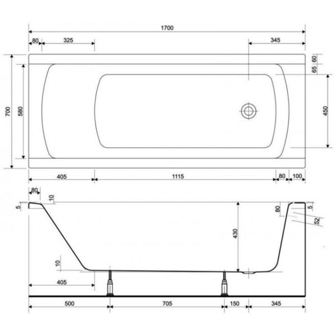 Korat Ванна 170*70 прямокутна + ніжки S301-122 Cersanit