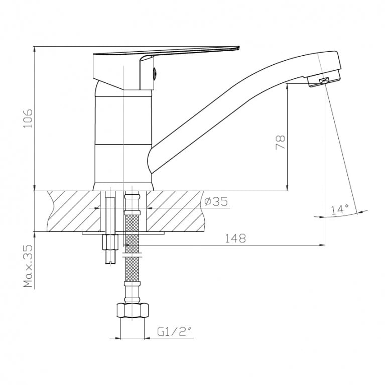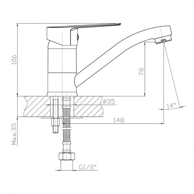 LOTUS Змішувач для кухні 1-важільний, вилив 160мм, хром 35 мм RBZZ002-6K