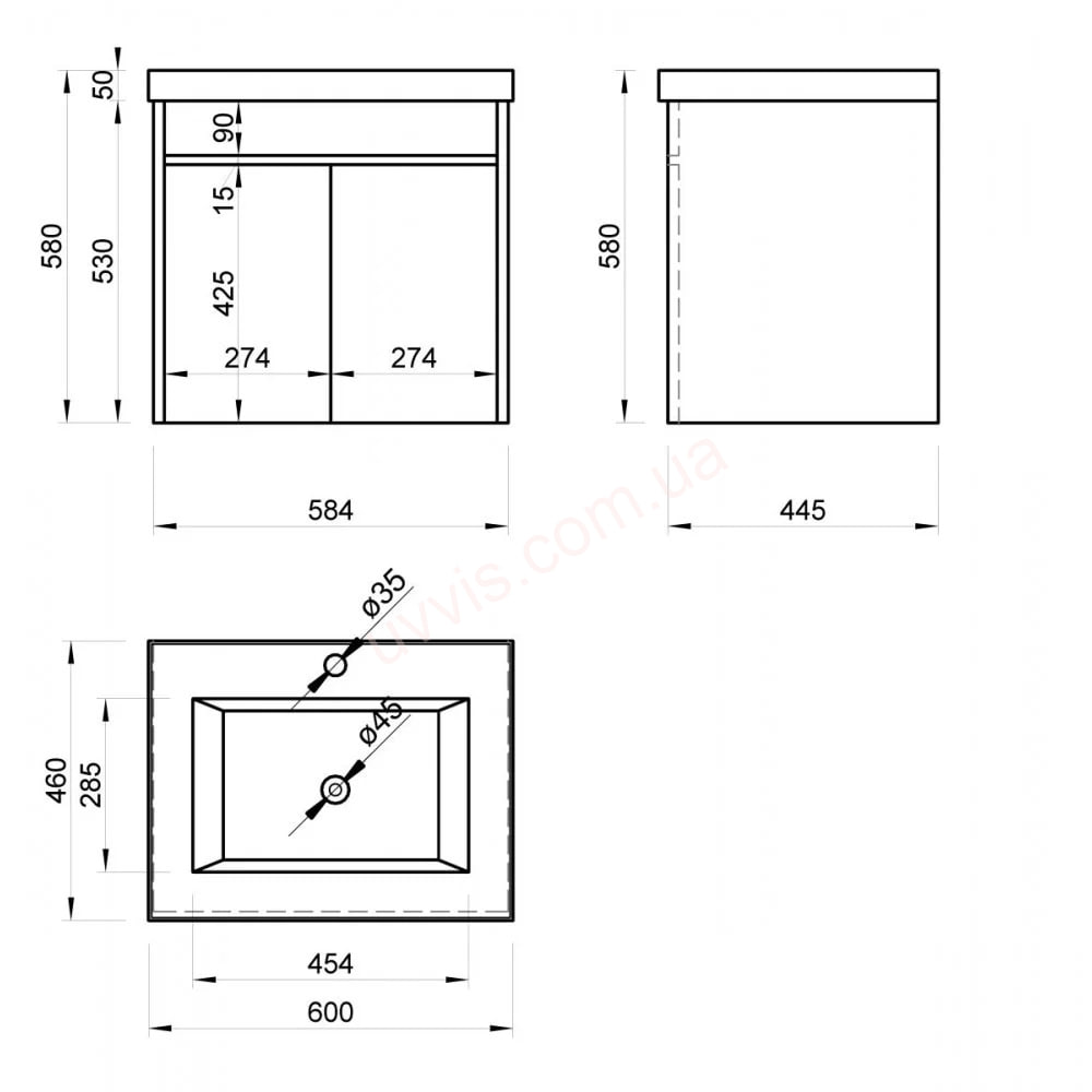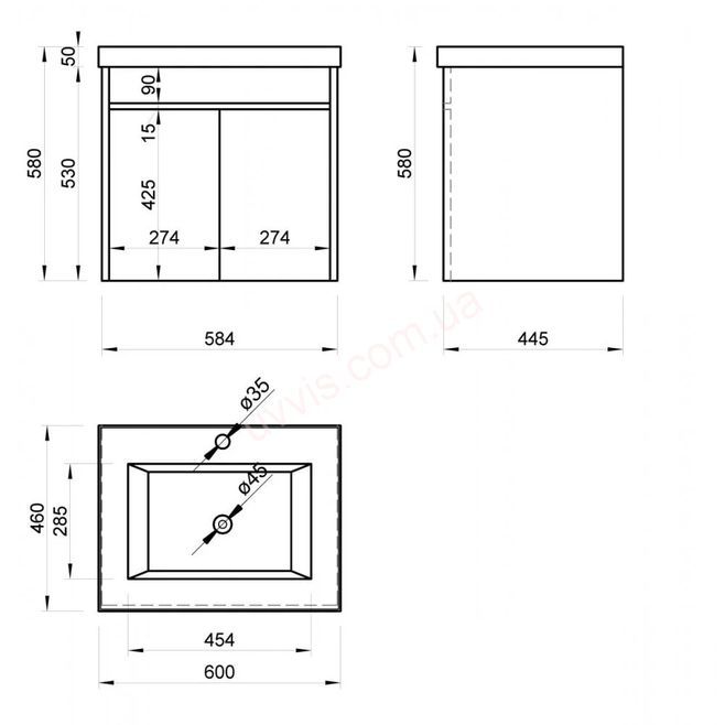 | Комплектація | тумба + умивальник |