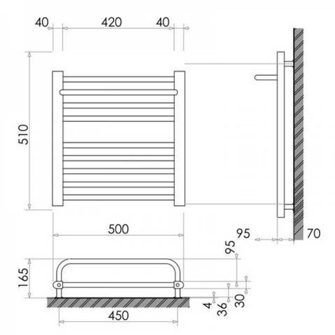 | Міжцентрова відстань в рушникосушці | 500 |