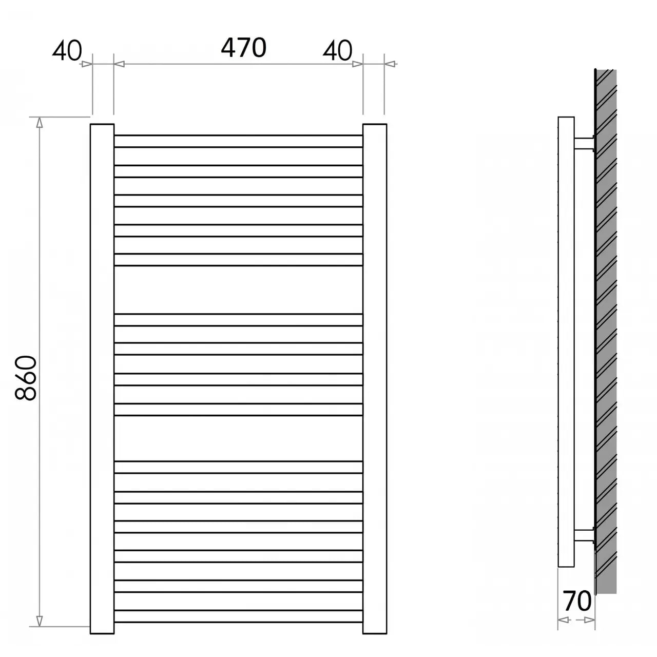 | Міжцентрова відстань в рушникосушці | 500 |