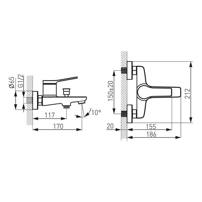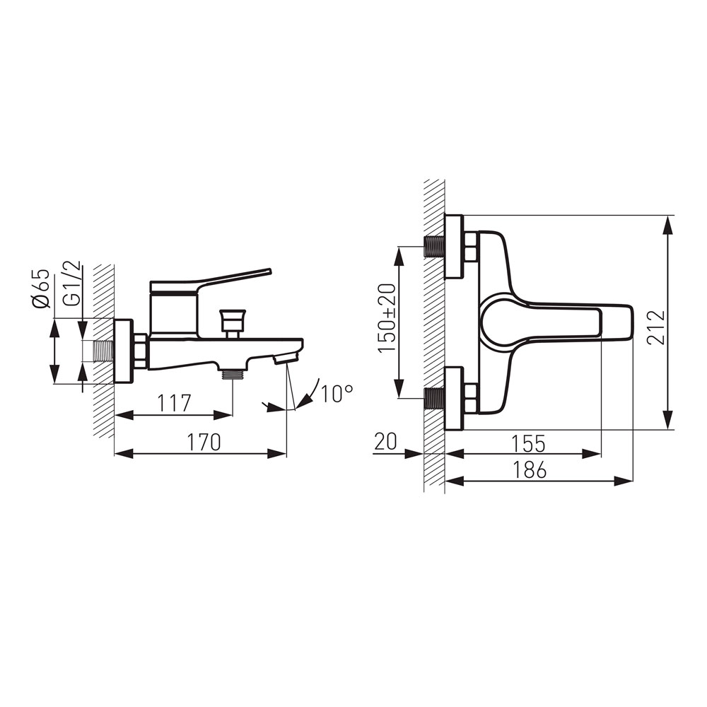 Stratos Black BSC1BL змішувач для ванни настінний з корот. зливом без душ. комплекту, чорний Ferro