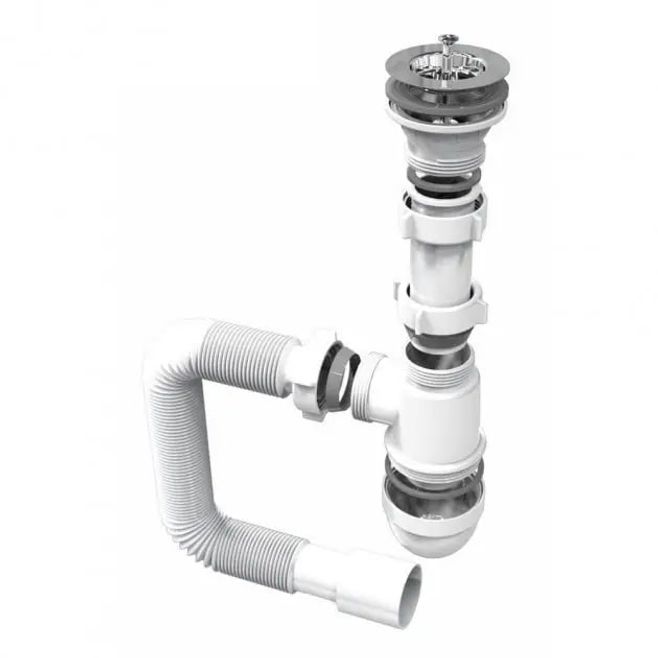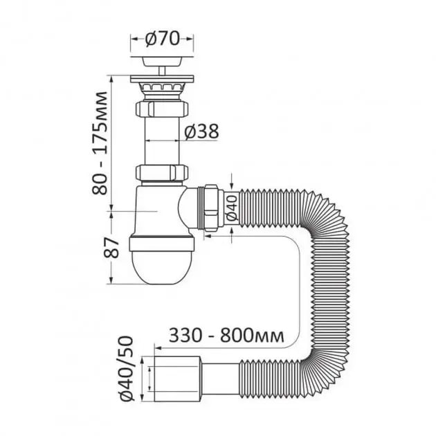Сифон для умивальника PP колб з розбір вип, сітка вип ?65, пробка, гофра ?40/50 до 800мм RSW405080-2